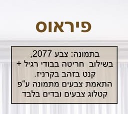 התאמה אישית מלאה במידות ( עד 320 ס"מ), בצבע ובתכנון החלוקה הפנימית.