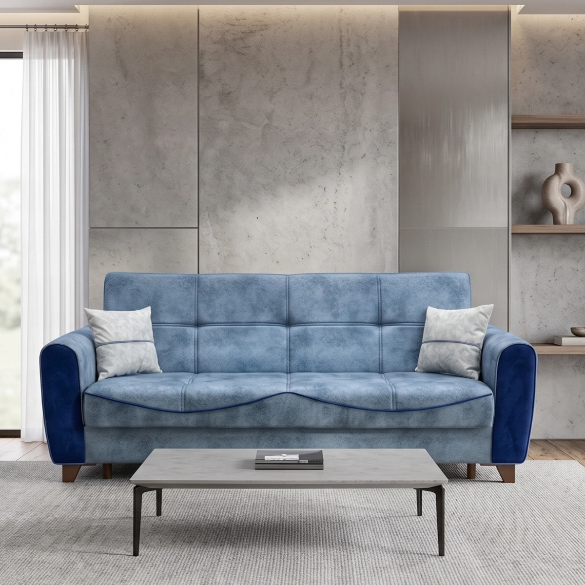 הספה נפתחת למיטה עם ארגז אחסון גדול.