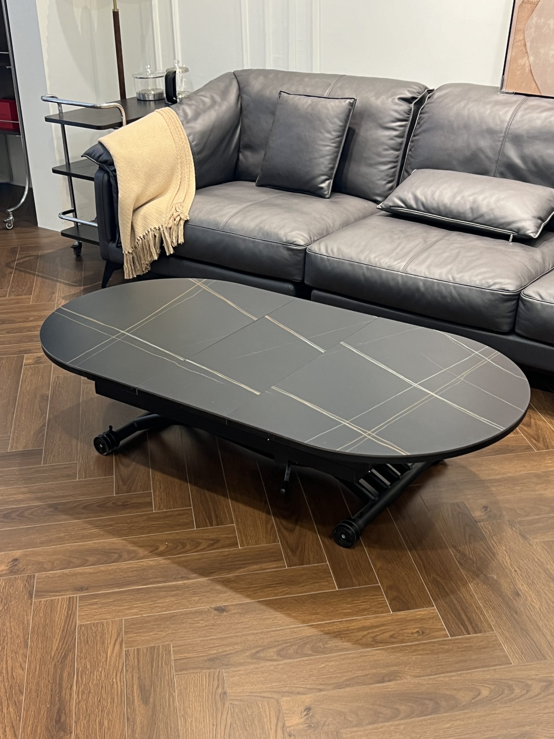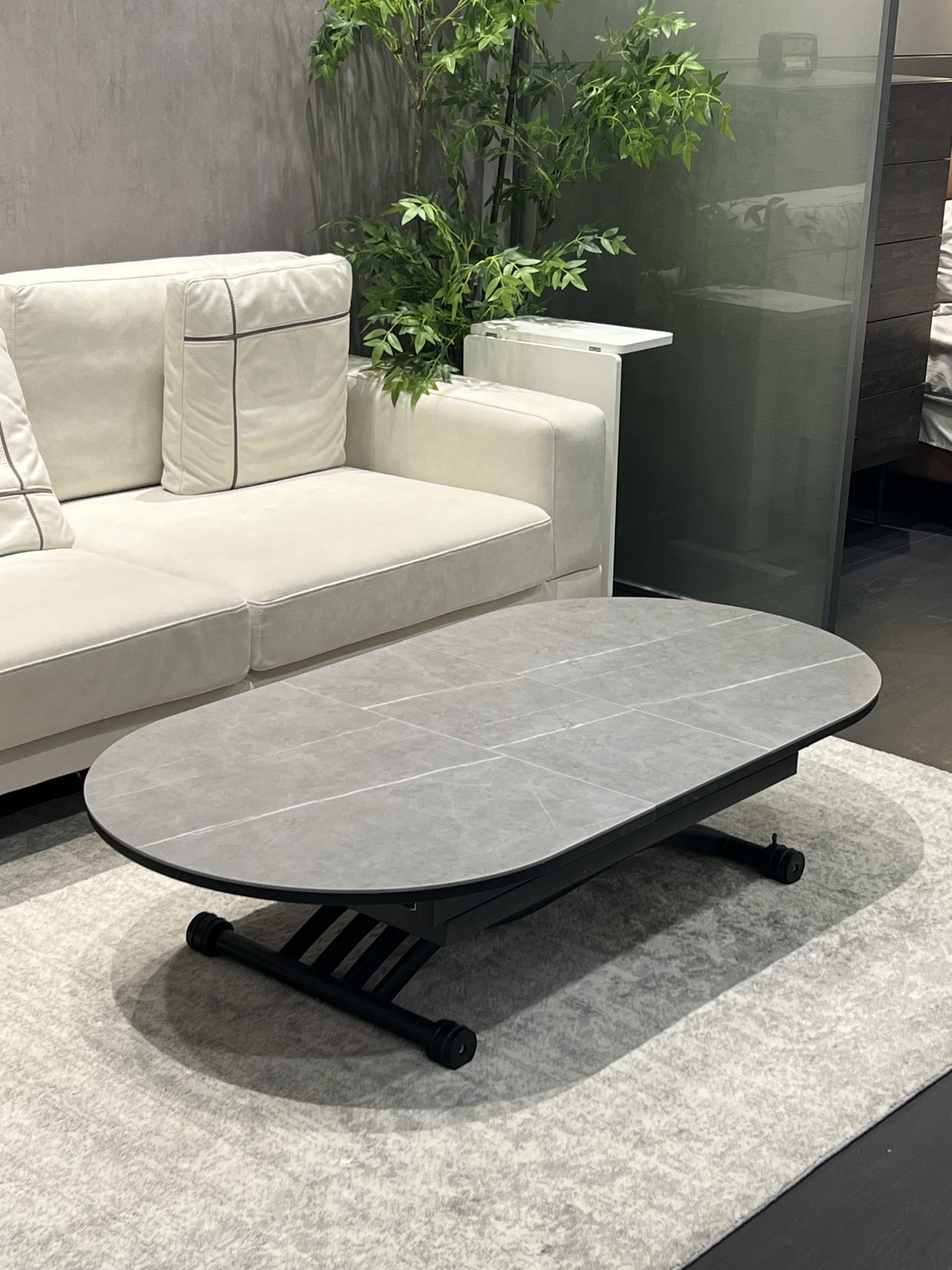 שולחן מעוצב שיכול לשמש גם כשולחן סלון וגם כפינת אוכל.